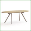 Bridge vergadertafel ellipsvorm 240 x 120 cm, massief houten ronde poten Ø 50 mm, vaste hoogte 75 cm.