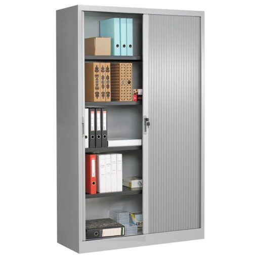 Op vrijwel ieder kantoor is tegenwoordig wel een roldeurkast te vinden. Doordat de jaloeziedeuren in de kast rollen blijft de ruimte voor de kast altijd vrij en hoef je geen rekening te houden met openslaande deuren. Dit zorgt ervoor dat de ruimte rond een kast vrij wordt gehouden. Met deze smalle variant van de hoge roldeurkast, die een hoogte van 198 cm en een breedte van 100 cm heeft, wordt de hoogte van je ruimte optimaal gebruikt, terwijl je ook plek overhoudt voor andere meubels of de kast tactisch in de ruimte kan plaatsen.