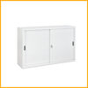 - Metalen schuifdeurkast in de kleur Aluminium enWit